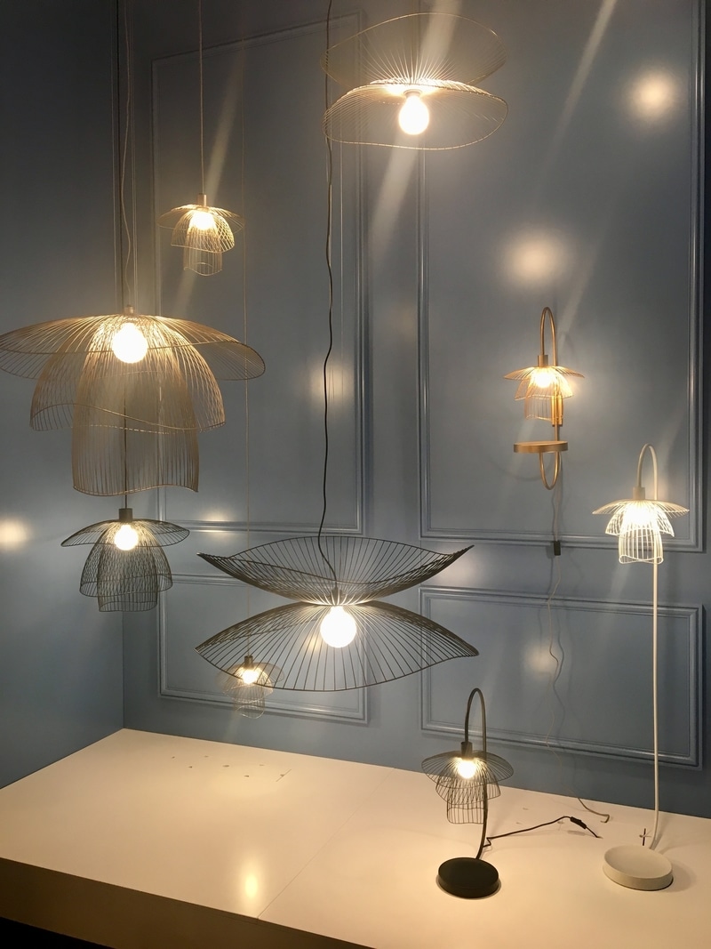 Pour les luminaires, les matières naturelles sont au rendez-vous chez Market Set et ses lampes Massaï, Singapour et Mekko, ainsi que chez Vincent Sheppard (Sari) et chez Forestier et ses luminaires Bamboo et Anemos. Forestier nous a aussi fait craquer sur sa collection très aérienne Libellule et Papillon. Flam&Luce nous a encore enchanté avec son lampadaire Sixt, personnalisable.