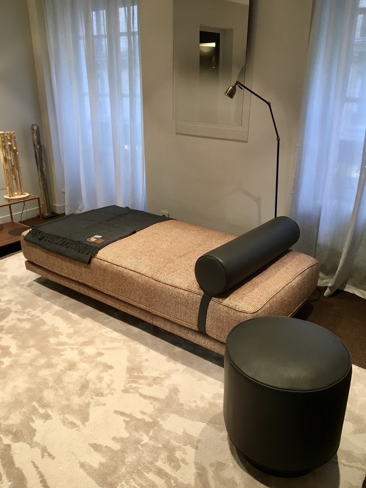 - Lit de repos Elsa de Duvivier, mélange cuir et tissu.