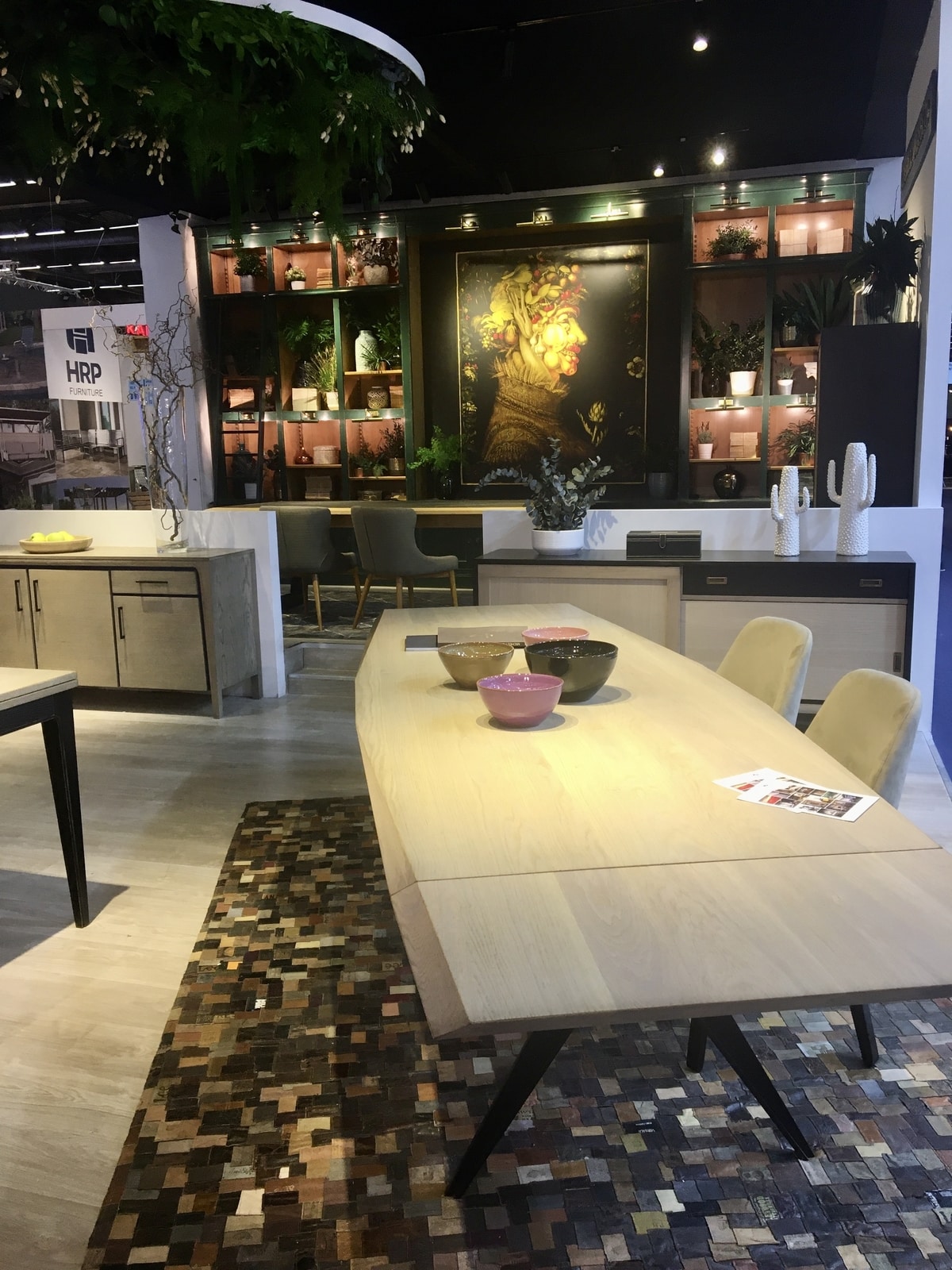 Nous avons pu noter que les matières naturelles étaient toujours d’actualité : le bois (chêne et noyer), le rotin et le bambou. Toujours présents également, le laiton, le marbre, le terrazzo et le béton. Le métal est de plus en plus utilisé en ameublement, notamment sur les plateaux de table et la poterie opère son grand retour.