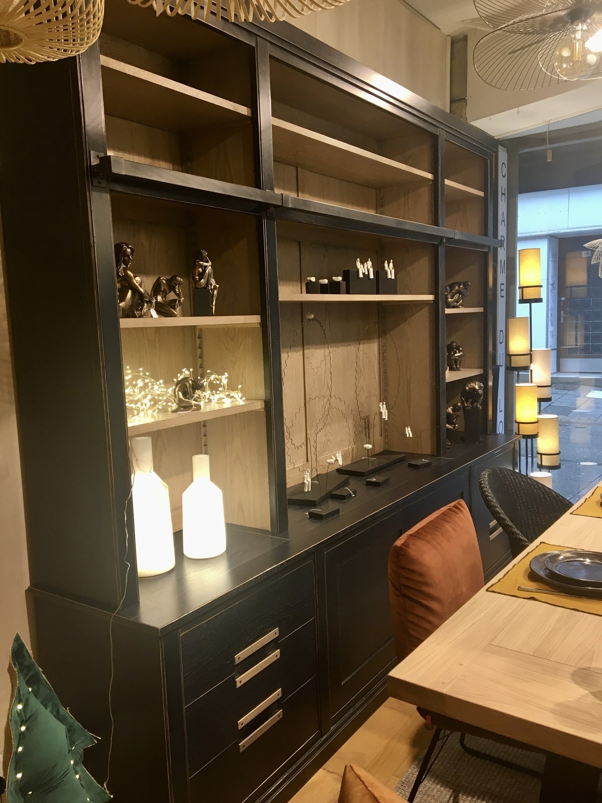 Votre magasin Au Charme du Logis se pare de mille feux à l’occasion des fêtes. Découvrez dans notre vitrine une ambiance de fête sublimée par de nombreux luminaires.